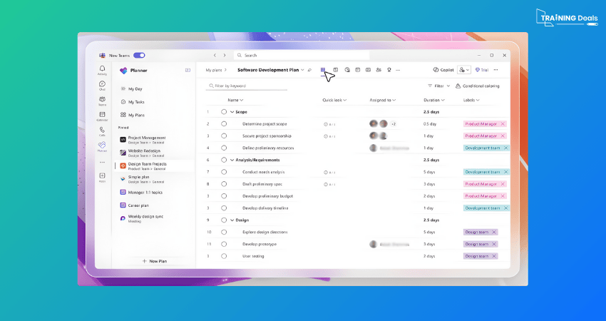 After merging with Microsoft Project in 2025, Microsoft Planner continues to be a strong choice for detailed scheduling and resource planning. It is best for structured, waterfall-based projects. You can create tasks, assign responsibilities, and monitor progress across shared boards.