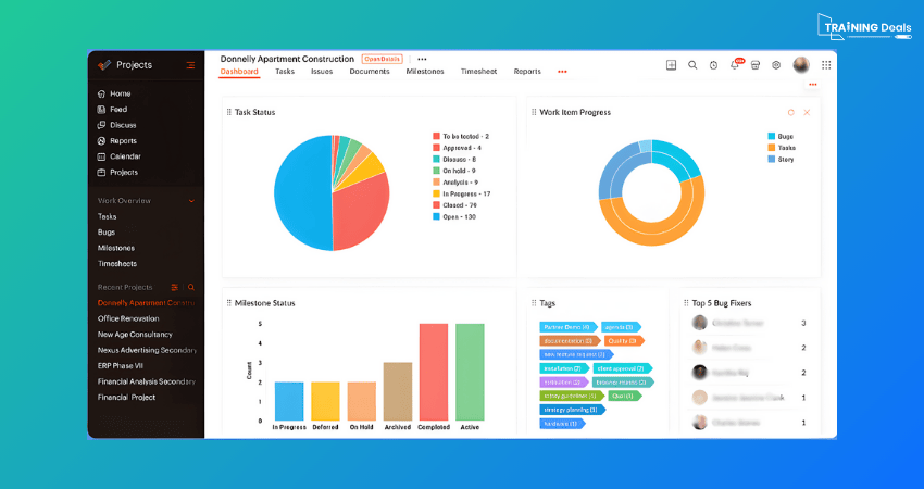 3) Advanced Dashboards: Offers deep insights into workflows and team progress